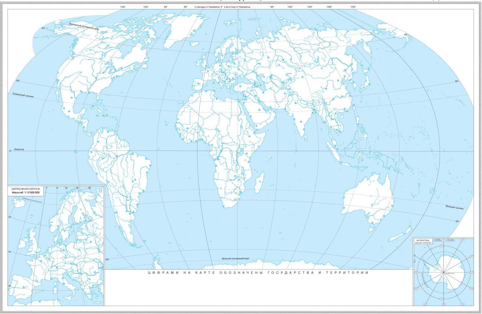 Контурная географическая карта мира открывается в новом окне на весь экран.